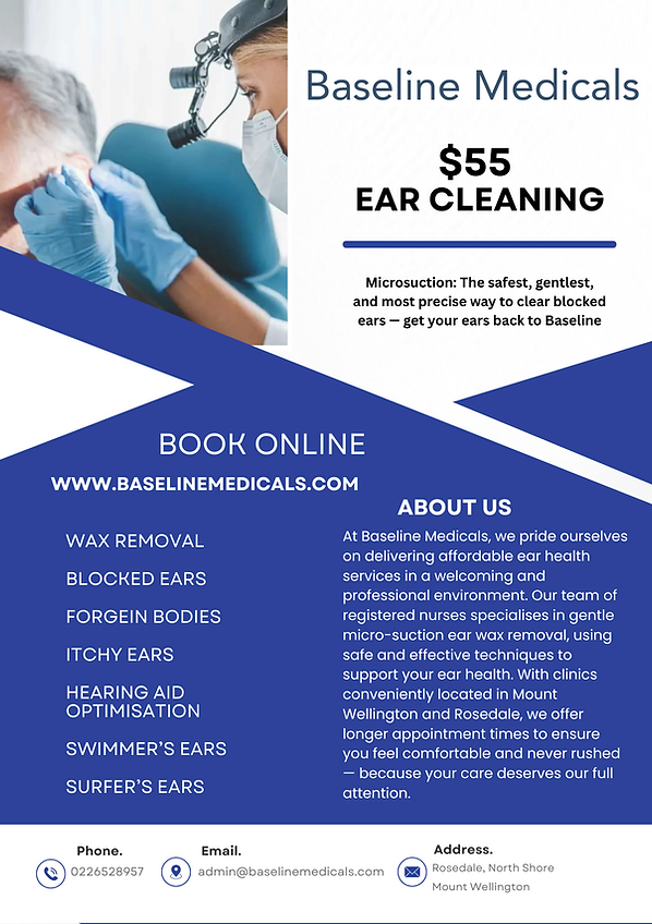 The Baseline Medicals team has a state of the art mobile clinic, if you have a workplace ear health initiative we can come to your worksite and carry our work place ear health checks including microsuctioning for your teams.